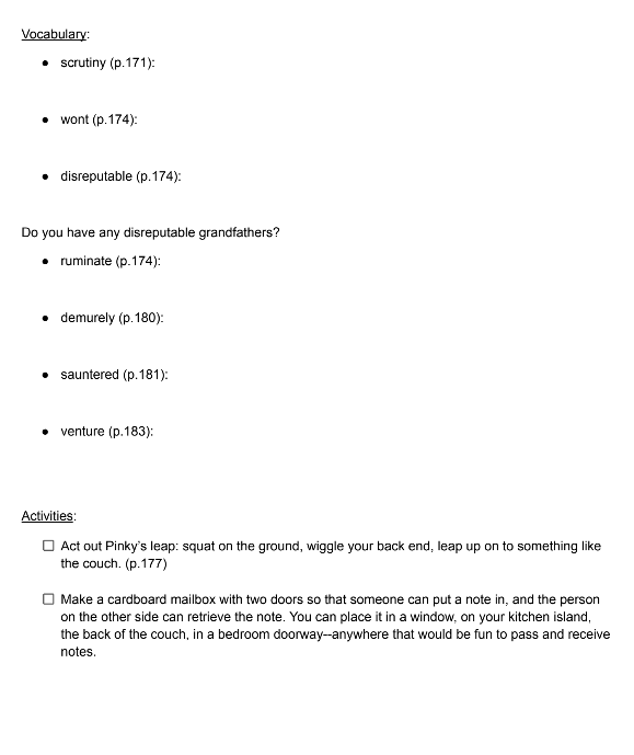 Pinky Pye Novel Study