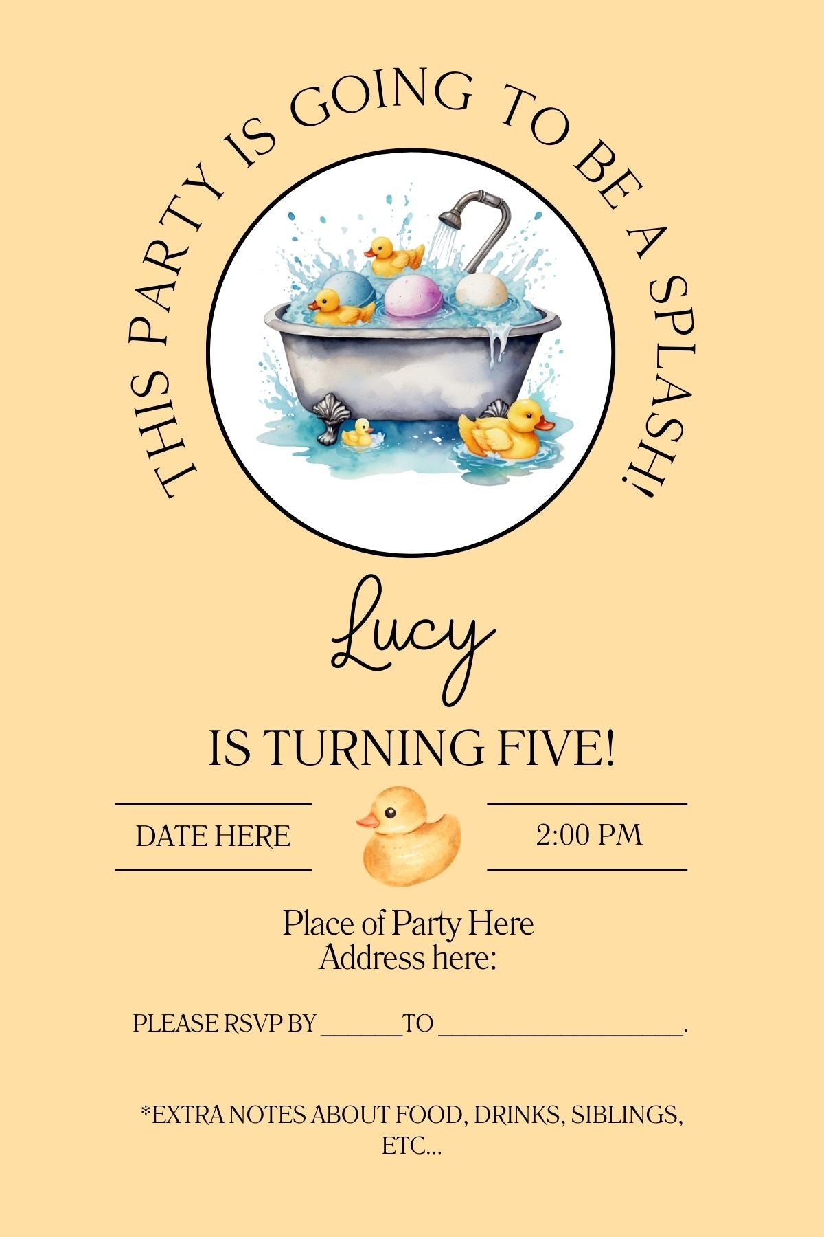 This editable invite is the perfect way to create your own invitations for those who love rubber ducks!
