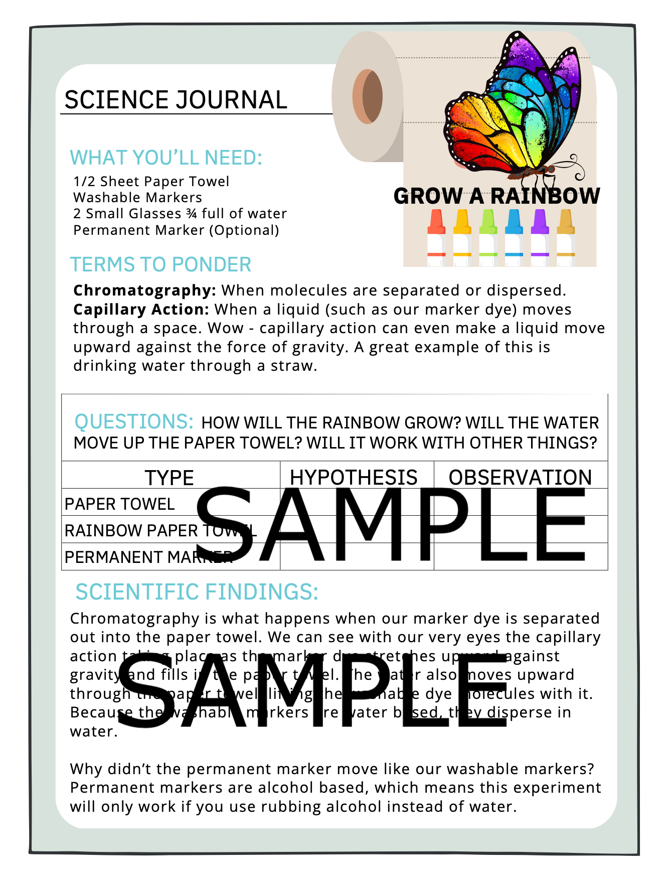 Each science journal focuses on specific scientific terms to ponder with explanations at the end. Learners will become familiar and confident practicing the scientific method while using the journals to write or draw their hypothesis and observations throughout the experiments.