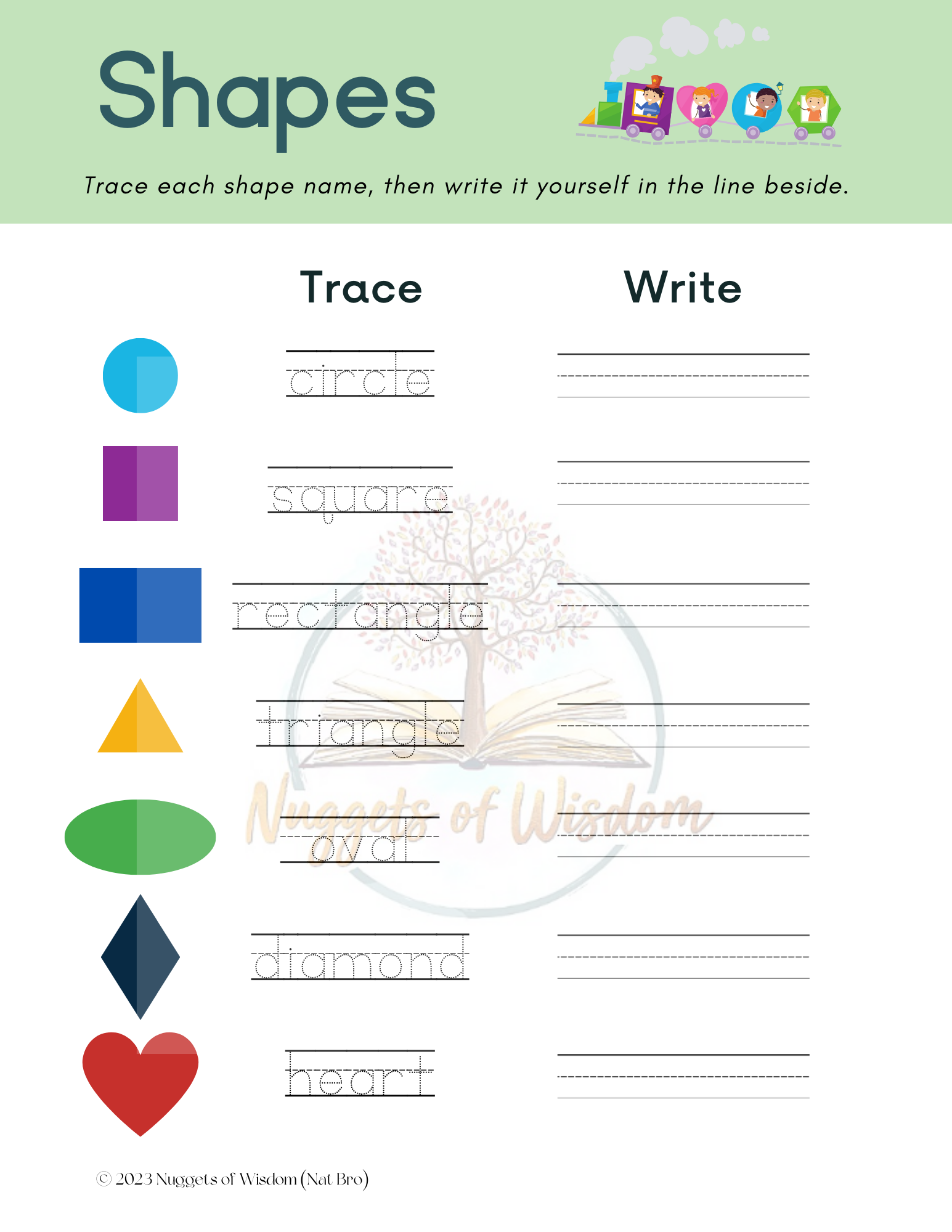 Each shape has individual pages to work through along with a comprehensive review at the end.