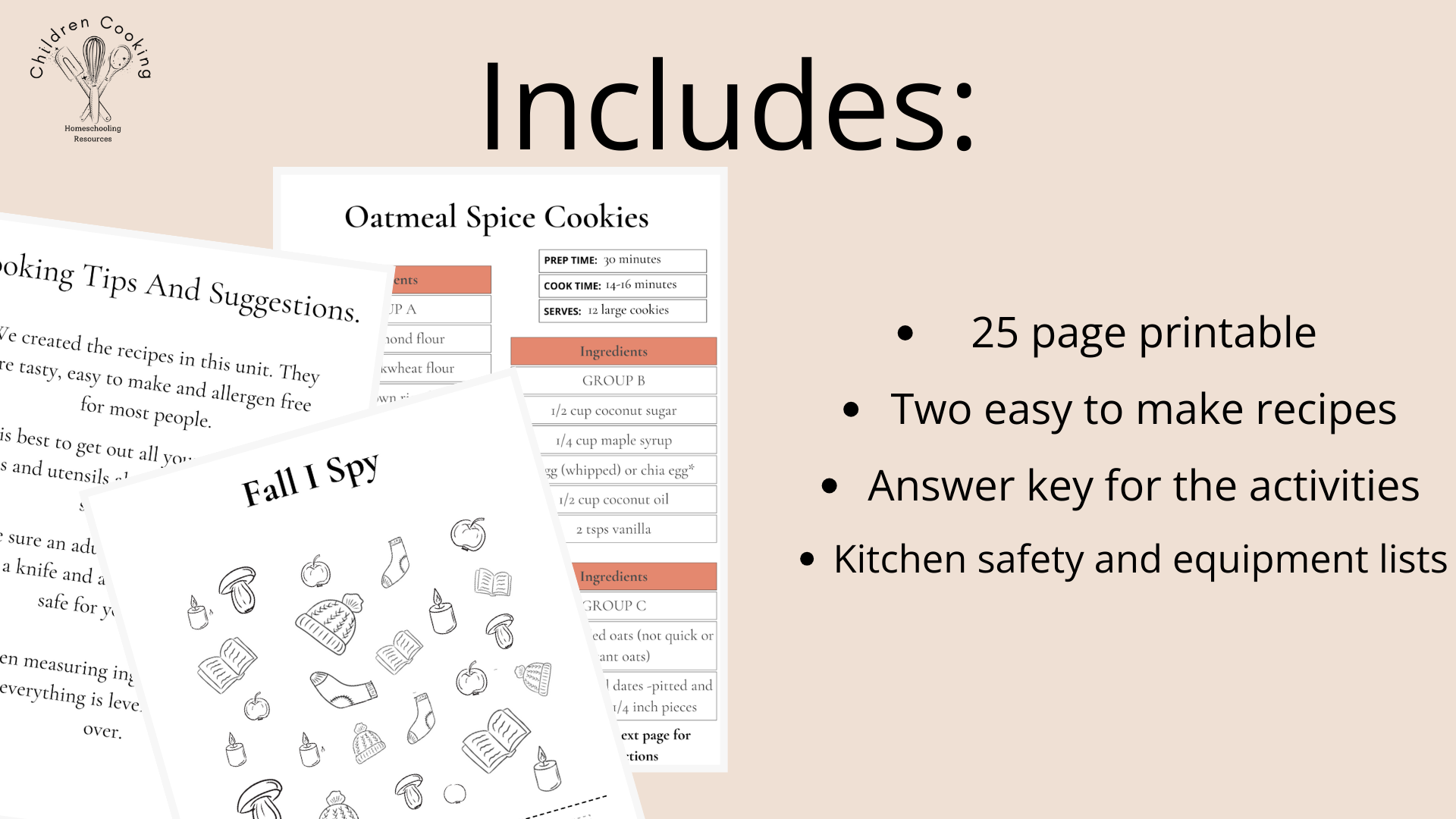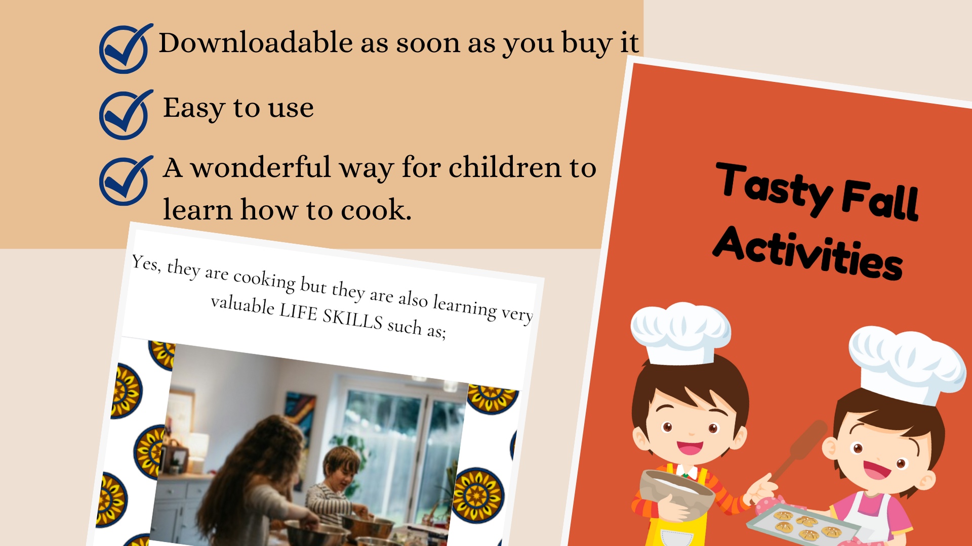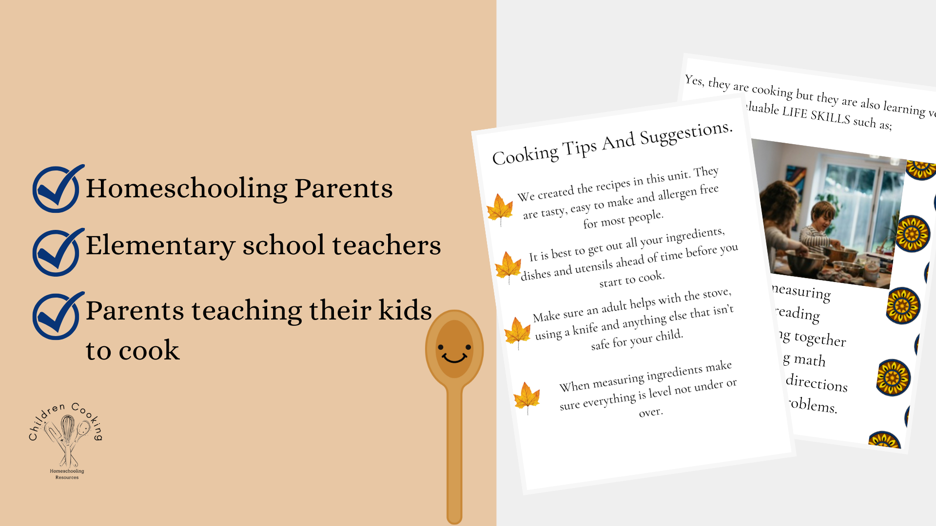 Our fun and educational Fall digital resource includes original and kid friendly recipes for muffins and cookies that could be used at Thanksgiving! Useful for homeschooling or teachers to encourage you to teach children to cook. When a child learns to cook they tend to eat better overall and this can help them develop a life-long skill.