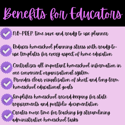 ✔Reduces homeschool planning stress with ready-to-use templates for every aspect of home education