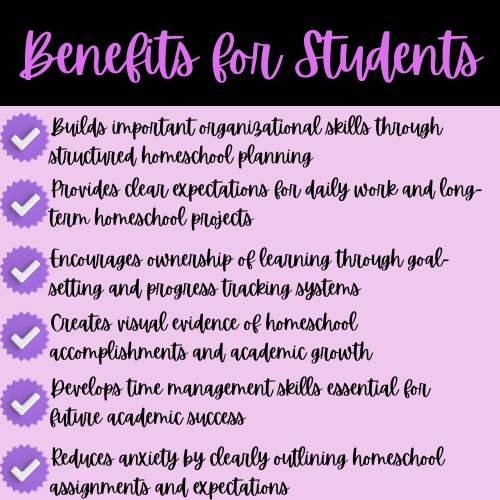 ✔Develops time management skills essential for future academic success ✔Reduces anxiety by clearly outlining homeschool assignments and expectations