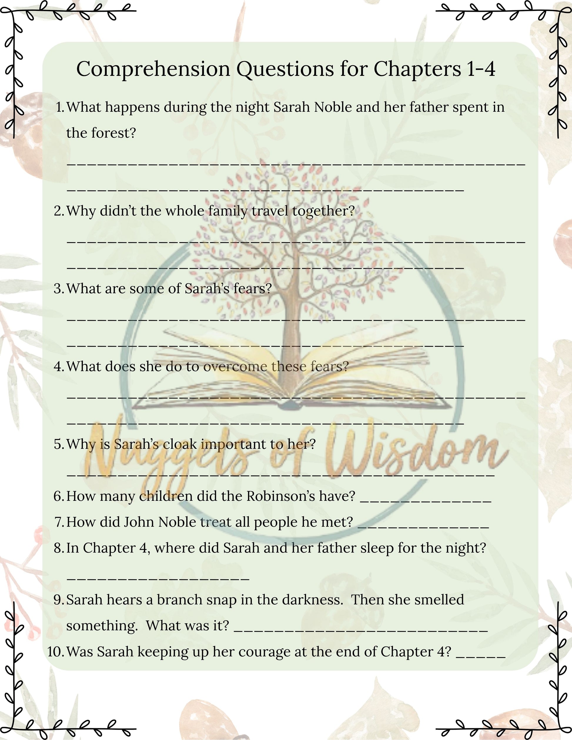 The Courage of Sarah Noble Unit Study | Hands-On Homeschool Curriculum (3 Weeks + Answer Key)