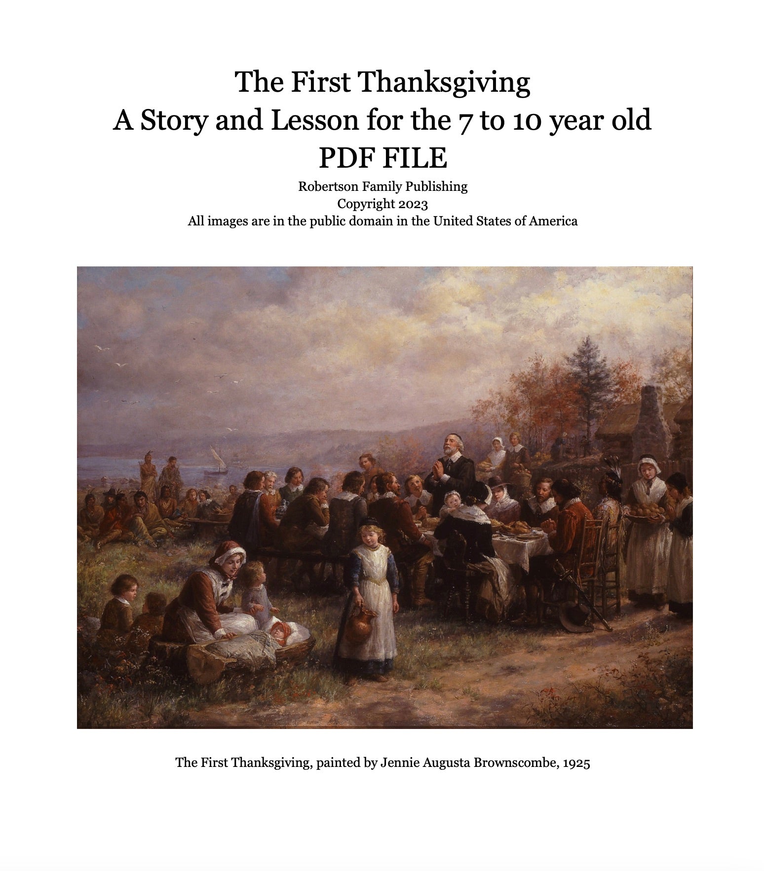 The First Thanksgiving Lesson is an 8 page PDF digital file intended for printing for the 8 to 10 year old student.