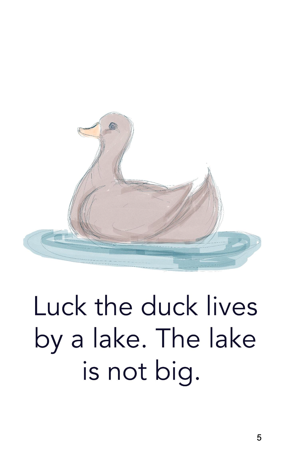 The Tale of Luck the Duck is an Easy Reader and the third collection of mini books in our "My First Readers" series. The Tale of Luck the Duck exposes kids to many phonics sounds including words with "silent e" "ee" "ea" "aw" "ow" "ar" and "ay" . But all of the words are small and easy for a new reader.
