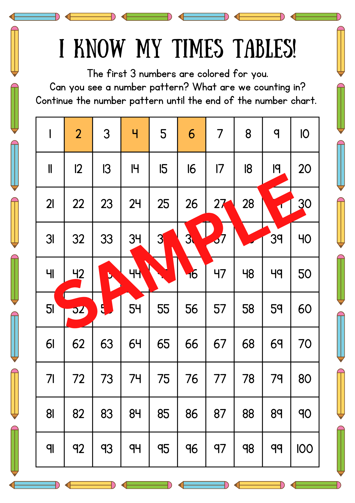 Each grid page provides an engaging challenge: the first three numbers in sequence are highlighted as clues. Students are encouraged to identify the pattern and determine the counting number to fill in the remaining grid up to 100. This interactive resource cultivates an enjoyable way to reinforce times tables proficiency while enhancing pattern recognition skills.